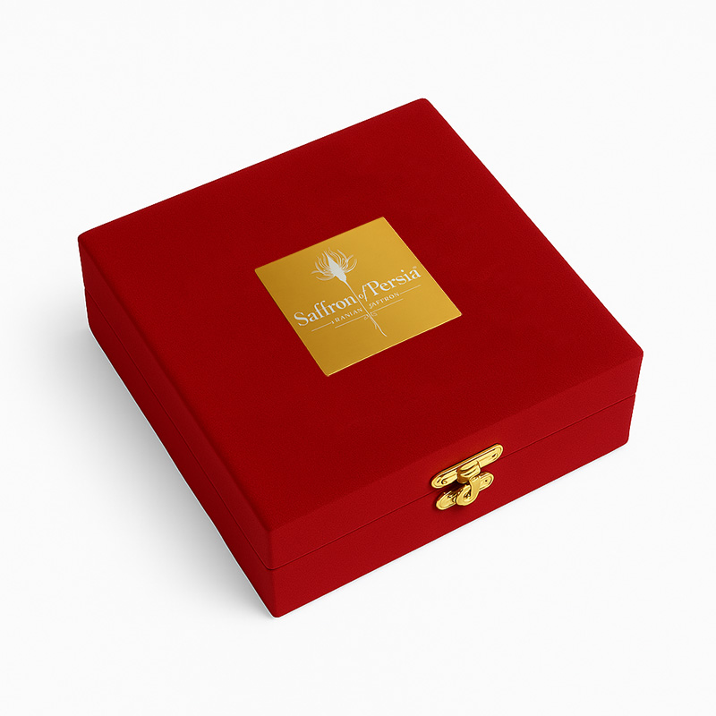 Experience 10 grams of Super Negin Saffron, presented in an elegantly embossed metal box enclosed within a luxurious red velvet package. This A++ grade saffron features rich red threads and a mesmerizing aroma that enhances every dish it touches. The embossed metal box preserves freshness while protecting the delicate saffron from light and moisture. Perfect for professional chefs, culinary enthusiasts, or as an exquisite gift, this saffron embodies the finest Persian tradition and craftsmanship. Each pinch delivers the rich heritage, vibrant color, and exceptional flavor that define premium saffron.