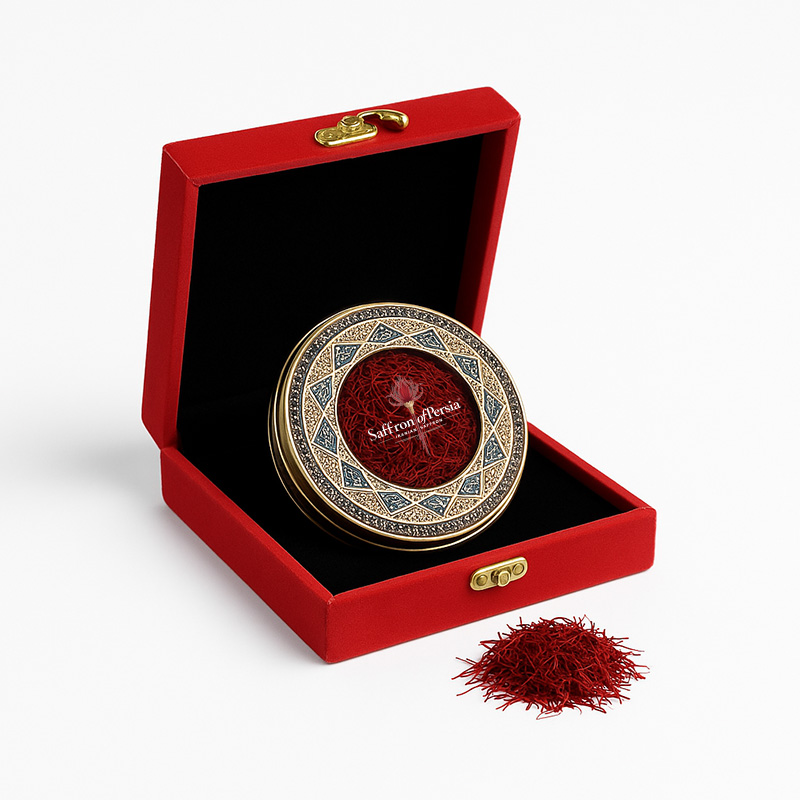Indulge in 5 grams of exquisite Super Negin Saffron, carefully selected for its vibrant red threads and rich, captivating aroma. Packaged in an embossed metal box within a luxurious red velvet case, this A++ grade saffron maintains its peak freshness and quality. Perfect for enhancing traditional Persian dishes or modern gourmet creations, each delicate thread delivers vibrant color and exceptional flavor. Ideal for chefs, food enthusiasts, or as an elegant gift, this saffron reflects Persian heritage, artisanal craftsmanship, and luxury. Every pinch transforms your culinary experience into a masterpiece of aroma, color, and taste.